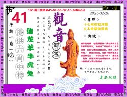 057期开奖时间2026年02月26 星期四)晚9:30开(农历正月初十 羊冲牛)